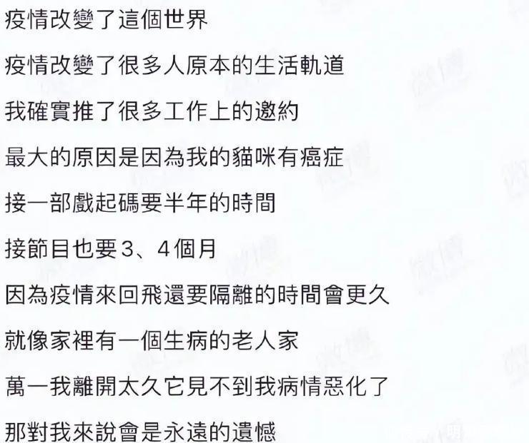 后来,她也回应了这些,可见她只是暂时歇息,但绝对没有放弃事业。再加上疫情那几年的缘故,家里老人,猫咪,都需要照顾。