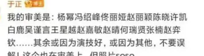 起因是,于正为推公司新的男艺人,证明自己的眼光没错,列举了很多人,其中大部分都是从他的剧里走出来的一线了。